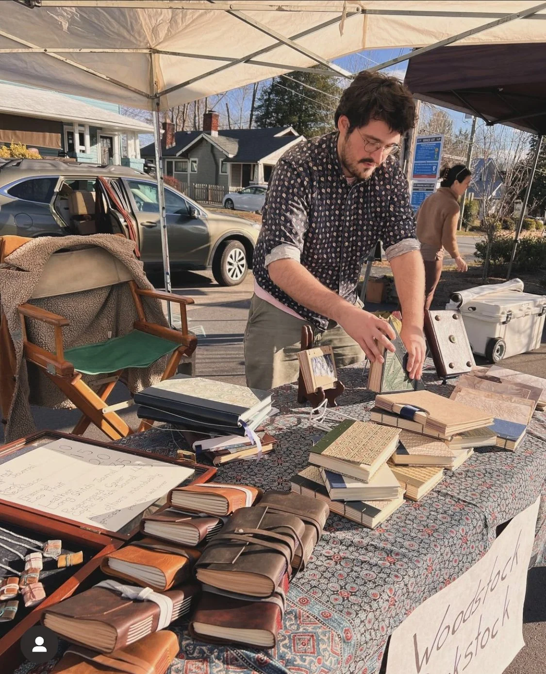 Hello there, my name is Jonah Woodstock. I was born and raised in the Blue Ridge Mountains. I currently live in Micaville NC (about an hour outside of Asheville NC), where I work full time in my bookbinding studio. I taught myself bookbinding by reading books, watching videos, talking to fellow bookbinders, reading niche forums, and years of trial and error.